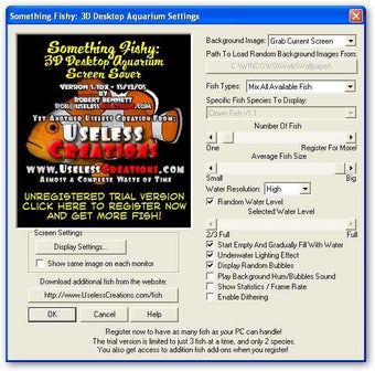 Votre écran se fige et se remplit doucement d'eau. Apparaissent alors plusieurs poissons qui prennent leurs aises, viennent voir ce qui se passe en surface ou sous le souffle d'air qui provient du fond. Parfois, un poisson-clown vient à passer. Mais si, souvenez-vous, le petit Nemo...